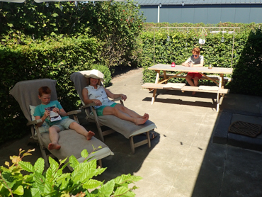 - Terras op het zuid-westen met teakhouten bistroset, 2 dekchairs en parasol